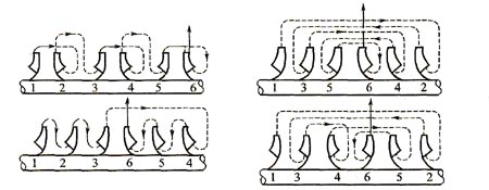 這種方案流道復(fù)雜,造價較高。當(dāng)級數(shù)較多時,由于各級泄漏情況不同和各級葉輪輪轂直徑不相同,軸向力也不能完全平衡,往往還需采用輔助平衡裝置。