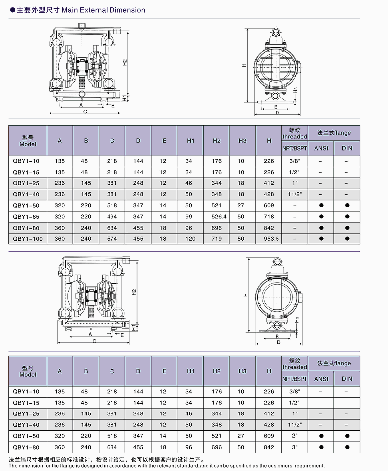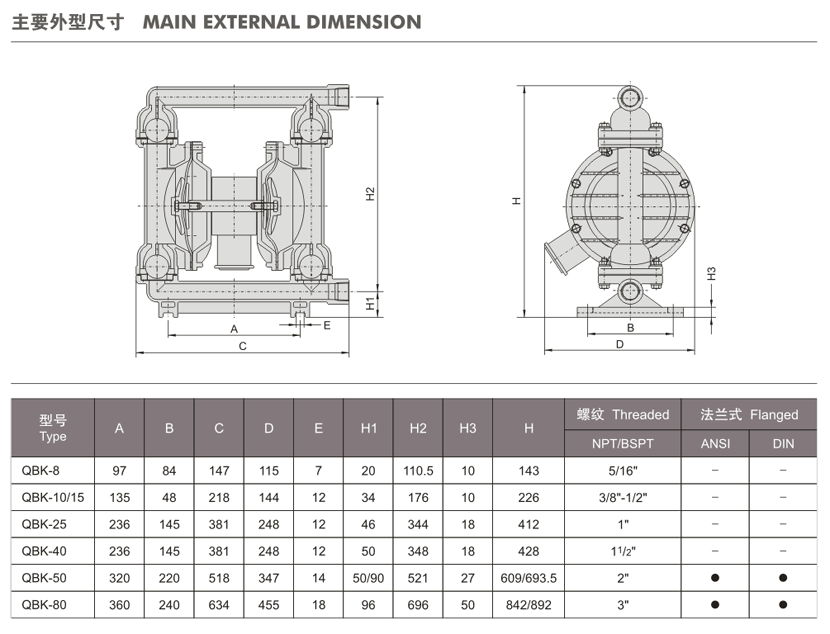 QBY氣動隔膜泵與QBK氣動隔膜泵安裝結(jié)構(gòu)圖