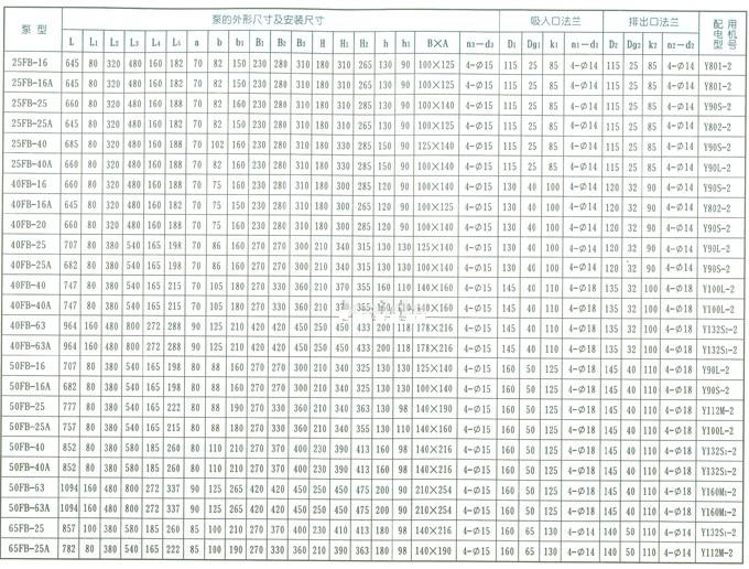AFB、FB耐腐蝕泵型號意義