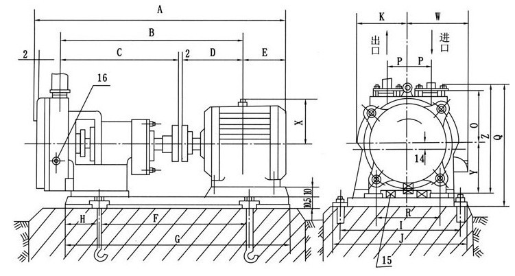 圖二:SZB型水環(huán)式真空泵安裝尺寸圖