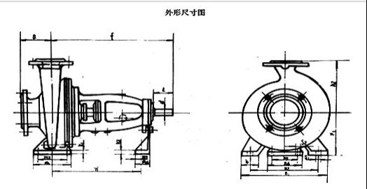 IS/ISR單級單吸離心泵外形尺寸圖: