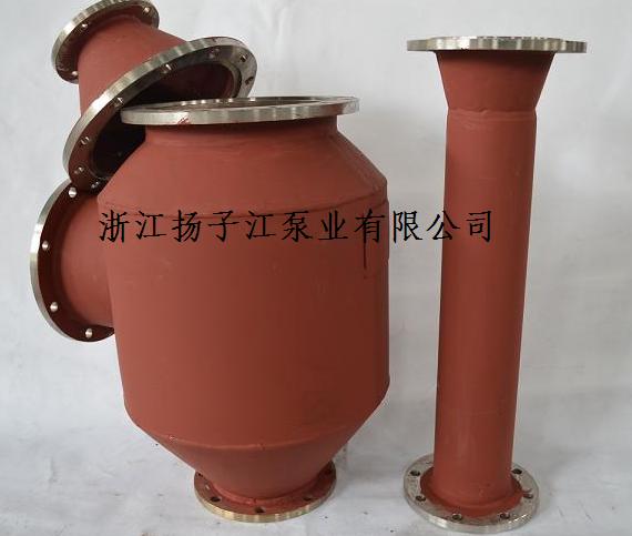 W型水力噴射器結(jié)構(gòu)比較簡(jiǎn)單,沒(méi)有機(jī)械傳動(dòng)裝置,噪音小,使用維修方便,配套設(shè)備采用多級(jí)泵低水位供水,其工作性能比較穩(wěn)定。水力噴射器的材料采用鑄鐵、不繡鋼等,用于真空蒸發(fā)系統(tǒng),如:化工、制藥、食品等部門對(duì)真空抽水、真空過(guò)濾、真空結(jié)晶、干燥、脫臭等工藝的場(chǎng)合使用。