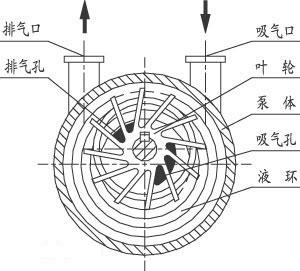 如圖為水環(huán)式真空泵的工作原理示意圖,水環(huán)泵是由葉輪、泵體、吸排氣盤、水在泵體內(nèi)壁形成的水環(huán)、吸氣口、排氣口、輔助排氣閥等組成的。