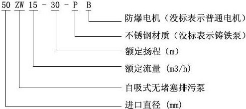 【ZW型無堵塞自吸排污泵】型號意義:
