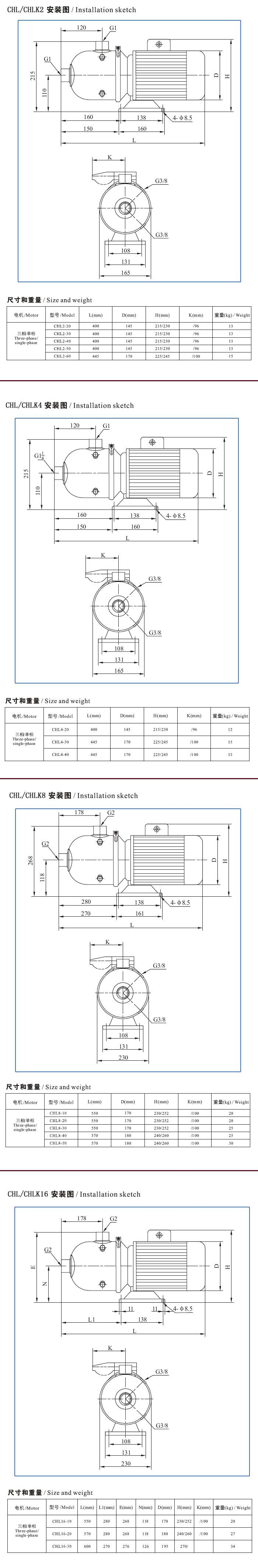 CHL型不銹鋼輕型多級離心泵】安裝尺寸圖: