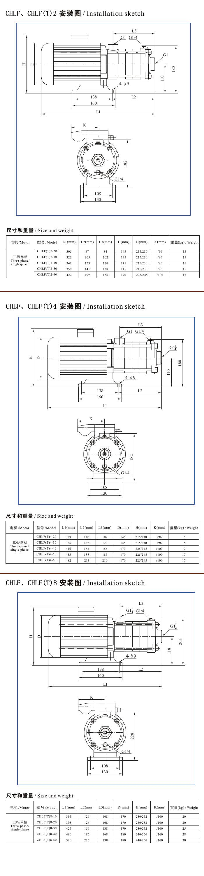 【CHLF型輕型段式不銹鋼多級(jí)離心泵】安裝尺寸圖: