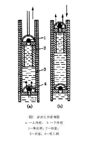 深井泵開泵前,吸入管和泵內(nèi)必須充滿液體。開泵后,葉輪高速旋轉(zhuǎn),其中的液體隨著葉片一起旋轉(zhuǎn),在離心力的作用下,飛離葉輪向外射出,射出的液體在泵殼擴(kuò)散室內(nèi)速度逐漸變慢,壓力逐漸增加,然后從泵出口,排出管流出。此時(shí),在葉片中心處由于液體被甩向周圍而形成既沒有空氣又沒有液體的真空低壓區(qū),液池中的液體在池面大氣壓的作用下,經(jīng)吸入管流入泵內(nèi),液體就是這樣連續(xù)不斷地從液池中被抽吸上來又連續(xù)不斷地從排出管流出。