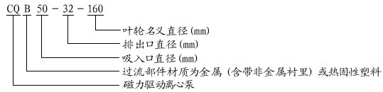 【CQB型不銹鋼磁力離心泵】型號(hào)意義: