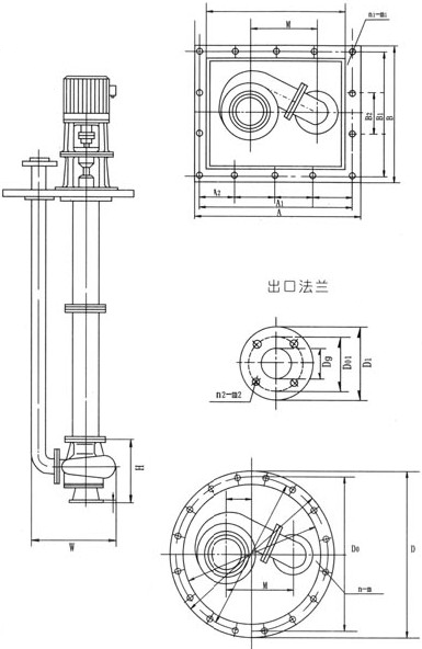 FYB型不銹鋼液下泵安裝尺寸圖: