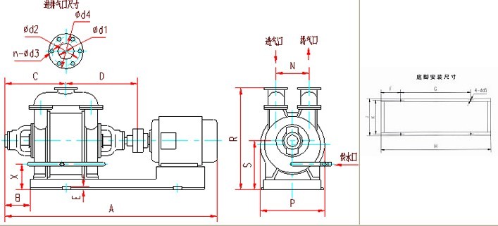 SK型水環(huán)式真空泵或壓縮機(jī)進(jìn)氣口前應(yīng)加裝過濾網(wǎng),以防顆粒物體進(jìn)入泵內(nèi)。