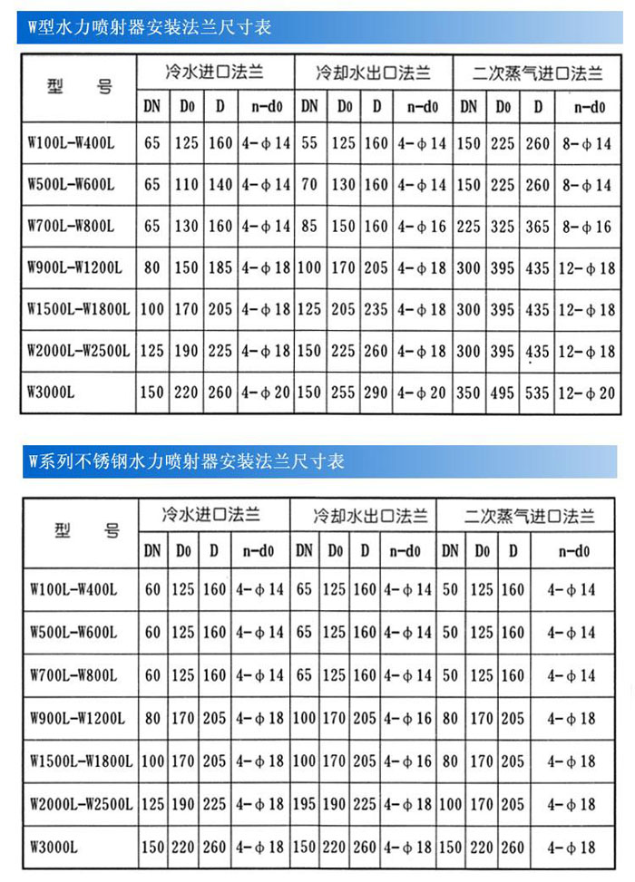 W系列水力噴射器冷水進(jìn)出口法蘭尺寸