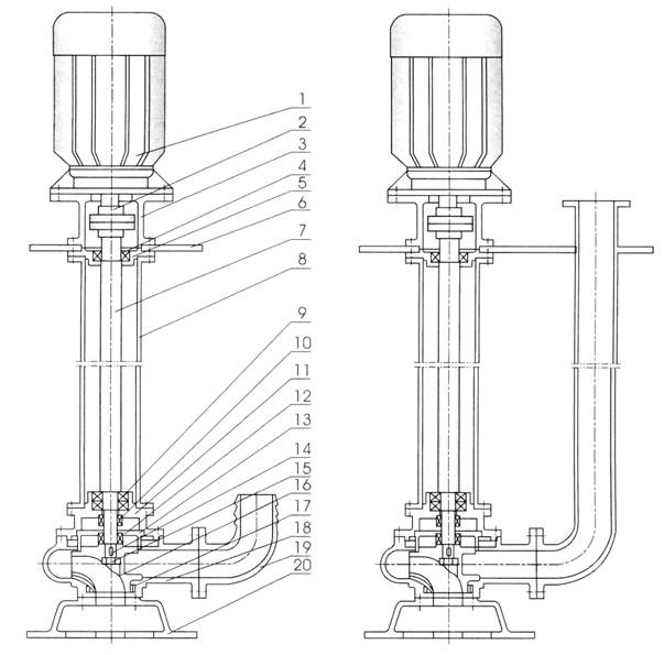 6、泵為立式結(jié)構(gòu),工作時(shí)泵體浸在液體中因而很容易起動(dòng),不存在排氣抽空問(wèn)題,同時(shí)具有無(wú)泄漏等特點(diǎn),液下深度可達(dá)7米。