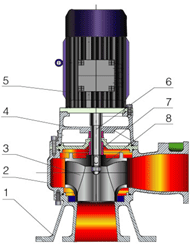 LW立式無阻塞排污泵是引進(jìn)國外先進(jìn)技術(shù),通過吸收、轉(zhuǎn)化研制而成,各項(xiàng)性能指標(biāo)均達(dá)到國家標(biāo)準(zhǔn)同類產(chǎn)品水平。由于采用獨(dú)特的單(雙)通道葉輪,排污能力強(qiáng)、能有效的通過泵口徑的5倍纖維物與直徑為泵口徑50%的固體顆粒,動密封采用兩組特殊材料的硬質(zhì)合金機(jī)械密封裝置,材質(zhì)為鑄鐵和不銹鋼。LW立式無阻塞排污泵為單吸蝸殼式泵,泵內(nèi)裝有無堵塞防纏繞型單(雙)大流道葉輪,具有很好的通過能力。該系列泵具有兩種結(jié)構(gòu)形式,一是電機(jī)與泵直接同軸,二是采用聯(lián)軸器聯(lián)接,電機(jī)采用標(biāo)準(zhǔn)立式電機(jī)。其結(jié)構(gòu)圖如下,每種結(jié)構(gòu)形式具有兩種底座連接形式,一是進(jìn)口水平吸入,具有轉(zhuǎn)角功能,可根據(jù)使用要求,進(jìn)出口安放成0°、90°、180°、270°,便于管路連接,二是進(jìn)口軸向吸入,便于立式安裝。